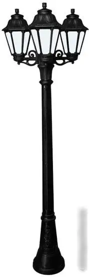 Фонарный столб Fumagalli Artu/Anna E22.158.S30.AXF1R оснащён тремя лампами мощностью 60 Вт, которые обеспечивают яркость до 800 лм и создают тёплый свет с цветовой температурой 2700 K. Его каркас выполнен из прочного металла с чёрным покрытием, а плафоны из стекла в классическом дизайне добавляют эстетики. Столб легко установить благодаря размерам: ширина 24,5 см и высота 185 см, а вес составляет 12 кг. Он безопасен для использования на улице благодаря повышенной влагозащищённости уровня IP44. Устройство поддерживает работу с лампами накаливания и светодиодными, цоколь E27. В комплект входит ламочка, что позволяет сразу начать эксплуатацию. Каркас и плафоны устойчивы к воздействию погодных условий и сохраняют внешний вид долгое время.