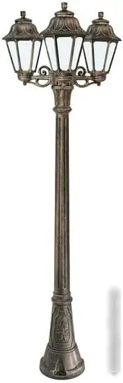 Фонарный столб Fumagalli Artu/Anna E22.158.S30.BYF1R отлично подходит для освещения улицы и садов. Он оснащён тремя лампами по 60 Вт с цоколем E27, что обеспечивает яркое и тёплое освещение. Каркас и плафоны сделаны из бронзового металла и стекла, что придаёт устройству стильный и прочный вид. Световой поток составляет 800 люмен при цветовой температуре 2700 К, создавая уютную атмосферу. В комплект входят лампочки, и он поддерживает как накаливание, так и светодиодные лампы. Он легко монтируется и устойчив к перепадам погоды благодаря влагозащищенности IP44. Высота столба достигает 185 см, а ширина — 24,5 см, вес — около 12 кг. Благодаря классическому дизайну он идеально впишется в любой внешний интерьер.