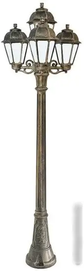Фонарный столб Fumagalli Artu Bisso/Saba K22.158.S31.BYF1R создаёт уютную атмосферу и отлично подходит для улицы благодаря повышенной влагозащищенности IP44. Он оснащён четырьмя лампами мощностью по 60 Вт, которые обеспечивают яркий свет с потоком 800лм и цветовой температурой 2700K. Каркас выполнен из металла и пластика в бронзовом цвете, а плафоны из стекла придают изделию классический стиль. Свет можно включать с помощью цоколя E27, подходящего для ламп накаливания и светодиодных. В комплекте идёт одна лампочка. Размеры столба — 56 см в ширину и длину, а его высота достигает 198 см. Вес конструкции — 12 кг, что облегчает монтаж. Столб отлично подходит для освещения улиц, садов и дворов. Он сочетает прочность, стиль и функциональность.