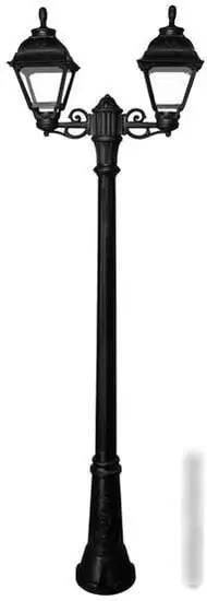 Фонарный столб Fumagalli Cefa U23.156.S20.AXF1R выполнен в классическом дизайне и имеет черный каркас из пластика с прозрачными стеклянными абажурами. Он оснащен двумя светодиодными лампами по 60 Вт, которые создают яркий световой поток в 800 люмен. Благодаря цоколю E27, лампы легко заменяются при необходимости. Встроенная влагозащищенность IP55 защищает устройство от воды и пыли, что делает его надежным для улицы. Размеры фонтана: ширина 82 см и высота 217 см, он занимает мало места и легко монтируется. Каркас и плафоны обеспечивают долговечность и сохранность в сложных погодных условиях. В комплект входит лампочка, что удобно и экономит время. Такой фонарный столб подойдет для освещения дорожек, дворов и парков. Он сочетает стильный дизайн с надежной работой и высокой яркостью.
