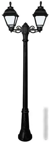 Фонарный столб Fumagalli Cefa U23.156.S20.AYF1R хорошо подходит для освещения дворов и улиц. Он оснащён двумя светодиодными лампами мощностью 60 Вт, которые обеспечивают яркий световой поток 800 лм и создают приятную атмосферу. Каркас выполнен из пластика, а плафоны — из стекла, что делает дизайн стильным и классическим. Светильник окрашен в чёрный цвет, а плафоны и абажуры — в белый, он отлично впишется в любой двор. Столб обладает повышенной влагозащищённостью класса IP55, он защищён от воды и пыли. Монтаж очень удобен, и лампы идут в комплекте. Высота столба достигает 217 см, а ширина — 82 см. Он несовместим с обычными лампами, поскольку использует энергоэффективные светодиоды. Такой фонарный столб прост в установке и служит надежным источником освещения.