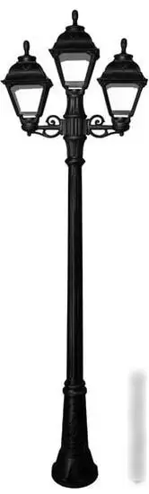 Фонарный столб Fumagalli Cefa U23.156.S21.AXF1R отлично подходит для освещения улиц и дворов. Он оснащён тремя светодиодными лампами мощностью по 60 Вт, которые обеспечивают яркий световой поток до 800 люмен. Каркас выполнен из пластика и окрашен в черный цвет, а плафоны сделаны из прозрачного стекла, что добавляет классический стиль. Светильник легко устанавливать благодаря стандартному цоколю E27. Он обладает повышенной влагозащищенностью с классом IP55, что защищает от воды и пыли. Светильник регулирует освещение и долго служит благодаря энергоэффективным светодиодам. Размеры: ширина 82 см и высота 227 см, он хорошо вписывается в любой дизайн двора. Лампы в комплекте уже есть, что удобно для начала использования.