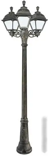 Фонарный столб Fumagalli Cefa U23.156.S30.BYF1R отлично подойдет для уличного освещения. Он оснащен тремя светодиодными лампами мощностью по 60 Вт, каждая с яркостью 800 люмен и цоколем E27, что обеспечивает яркое освещение. В комплекте идут лампы, поэтому установка не займет много времени. Столб выполнен из пластика с прочным бронзовым каркасом и стеклянными плафонами белого цвета. Он устойчив к влаге благодаря уровню защиты IP55, что позволяет использовать его в любых погодных условиях. Высота конструкции 217 см, ширина — 77 см, что удобно для освещения больших участков. Дизайн классический, он гармонично дополняет любой двор или дорожку. Для устойчивости в основании предусмотрено надежное крепление. Такой светильник легко устанавливать и он служит долго благодаря высокому качеству материалов.