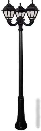 Фонарный столб Fumagalli Cefa U23.157.R30.AXF1R отлично подойдёт для освещения улиц и дворов. Он оснащён тремя светодиодными лампами мощностью 6 Вт каждая, что обеспечивает яркость 800 люмен при цветовой температуре 2700 K. Прозрачные плафоны из акрила и чёрный каркас из пластика создают классический, стильный внешний вид. Этот фонарь умеет ярко освещать пространство и долго служить благодаря усиленной влагозащищённости IP55. Он легко монтируется и устойчив к погодным условиям. Лампы входят в комплект, их легко заменить при необходимости. Высота столба составляет 250 см, ширина — 87 см, что подходит для широкого применения. Благодаря классическому дизайну он отлично впишется в любой двор или улицу. Устройство обеспечивает стабильную работу и высокую функциональность, делая освещение безопасным и комфортным.