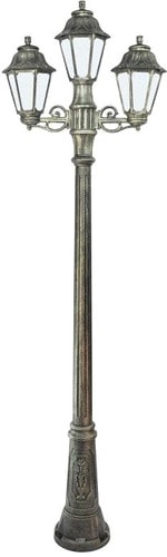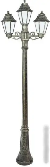 Фонарный столб Fumagalli Gigi Bisso/Anna обеспечит яркое освещение на улице с тремя лампами мощностью 60 Вт каждая. Благодаря светодиодным и лампам накаливания, он создаст световой поток 800 люмен при цветовой температуре 2700 K, что подходит для уютной атмосферы. Корпус выполнен из прочного металла и пластика, покрыт бронзовой краской, которая хорошо смотрится и защищает от коррозии. Плафоны из стекла придают классический вид и позволяют равномерно распространять свет. Столб легко монтируется благодаря прочной конструкции и имеет повышенную влагозащищенность с классом IP44. Размеры: высота 230 см, длина и ширина по 61 см, весит он около 14 кг. В комплект входит лампочка, что удобно для установки. Такой фонарный столб подойдет для освещения аллей, дорожек и дворов. Он сочетает стильный дизайн и надежность, защищая светильники в любой погоды.