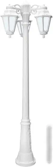 Фонарный столб Fumagalli Gigi Bisso/Anna сочетает классичный дизайн с прочной конструкцией из металла и пластика. Он оснащён тремя лампами мощностью по 60 Вт, которые обеспечивают яркий свет — 800 люмен при цветовой температуре 2700 K. Каркас и плафоны выполнены в белом цвете, что хорошо вписывается в разные улицы и дворы. Светильник используют лампы накаливания или светодиодные, лампочка идёт в комплекте. Благодаря повышенной влагозащищённости IP44, устройство устойчиво к дождю и влажной погоде. Размеры столба — 56×56×188 см, он весит 14 кг и легко монтируется. Он отлично подходит для освещения улицы или дачного участка, создавая уютную атмосферу.