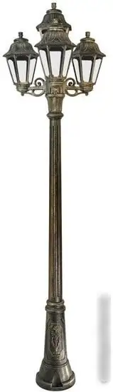 Фонарный столб Fumagalli Gigi Bisso/Anna E22.156.S31.BXF1R оснащён четырьмя лампами мощностью 60 Вт, что обеспечивает яркое освещение до 800 люмен. Благодаря классическому дизайну с бронзовым каркасом и плафонами из стекла он отлично дополнит сад или дорожку. Материалы конструкции — металл и пластик, а плафоны выполнены из стекла, что делает столб прочным и долговечным. Он легко устанавливается и устойчив на улице благодаря высоким стандартам влагозащиты IP44. Цветовая температура 2700K создаёт мягкий тёплый свет, уютную атмосферу. В комплект входят лампочки, а тип ламп — накаливания или светодиодные, что даёт возможность выбрать наиболее подходящий вариант. Высота столба 223 см, ширина и длина по 56 см, а вес около 15 кг. Этот уличный фонарь подчеркивает классический стиль и служит надёжным освещением для вашего участка.