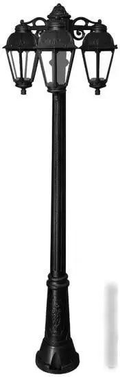 Фонарный столб Fumagalli Gigi Bisso/Saba K22.156.S30.AXF1RDN создает яркое освещение для улицы благодаря трем лампам мощностью 60 Вт с цветовой температурой 2700 K. Он выполнен из прочных материалов — металл и пластик, с черными плафонами и каркасом, что позволяет ему хорошо сочетаться с любым дизайном участка. Световой поток в 800 люмен обеспечивает хорошую освещенность территории. В комплект входят лампочки с цоколем Е27, что облегчает замену и обслуживание. Столб защищен от влаги по стандарту IP44, что делает его надежным в любую погоду, даже в дождь. Высота конструкции составляет 188 см, ширина и длина — по 56 см, а вес — около 14 кг. Его монтаж прост и позволяет быстро установить устройство без особых усилий. Классический дизайн добавляет уют и стиль уличной зоне. Мощные лампы обеспечивают яркое и равномерное освещение. Благодаря высокой влагозащите, эта модель прослужит долго и безопасно.