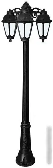Фонарный столб Fumagalli Gigi Bisso/Saba K22.156.S30.AYF1RDN отлично подходит для освещения улиц и садов. Он оснащен тремя лампами по 60 Вт, создавая яркое освещение в 800 люмен. Устройство выполнено из прочных материалов — металл, пластик и стекло, что обеспечивает долгий срок службы. Столб устойчив к влаге благодаря уровню защиты IP44 и легко монтируется в нужное место. Световая температура 2700 K создает теплое и приятное освещение. В комплект входит лампочка, и есть возможность выбрать между накаливаниями или светодиодами. Высота колонны составляет 188 см, а ширина и длина — по 56 см. Столб весит около 14 кг и легко устанавливается. Его классический черный дизайн отлично сочетается с разными стилями наружного оформления.