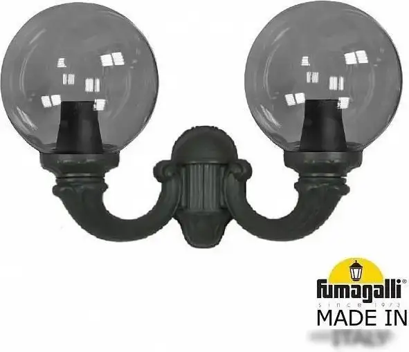 Этот уличный настенный светильник Fumagalli Globe 300 оснащён двумя лампами мощностью по 75 Вт, которые обеспечивают яркий световой поток 800 лм. Его плафоны и абажур выполнены из дымчатого стекла, а каркас — из прочного пластика черного цвета, что делает дизайн современным и стильным. Светильник не поворачивается, но его конструкция обеспечивает стабильное освещение. Он обладает повышенной влагозащищённостью IP55, что защищает его от влаги и пыли. В комплект входят филаментные светодиодные лампы «FUMAGALLI», яркостью 800 лм, что позволяет экономить электроэнергию. Размеры устройства — 80 см в ширину и 42,5 см в высоту, оно весит 4,6 кг и легко монтируется на стену. Светильник идеально подходит для уличных условий благодаря высокой влагозащищённости и стильному дизайну. Он создает яркое освещение, делая улицу безопаснее и уютнее.