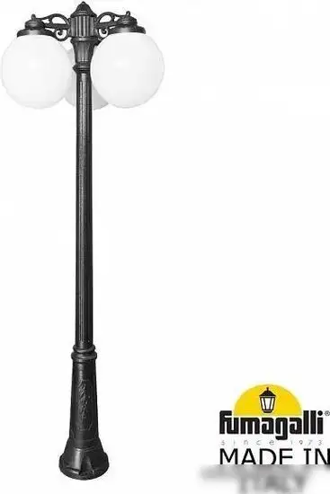 Городской фонарь Fumagalli Globe 300 FU_G30.157.S30.AYF1RDN обеспечивает яркое освещение с световым потоком 800 лм благодаря трем лампам мощностью 75 Вт. Он оснащён цоколем E27 и комплектуется филаментной светодиодной лампой для долгой и экономичной работы. Каркас выполнен из прочного пластика, а плафоны — из стекла, что добавляет стильный вид и надежность. Фонарь окрашен в черный цвет, что отлично сочетается с городским дизайном. Высота устройства составляет 210 см, ширина — 67,5 см, а вес — 14 кг. Он имеет повышенную влагозащищенность IP55, что позволяет использовать его в любых погодных условиях. Фонарь не поворачивается, что обеспечивает устойчивое освещение. Удобный монтаж и долговечность делают его хорошим выбором для улицы.