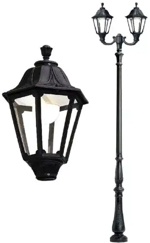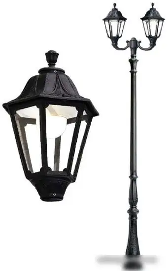 Фонарный столб Fumagalli Noemi E35.205.R20.AXH27 превосходно подходит для освещения улиц и садов. Он оснащён двумя светодиодными лампами мощностью по 100 Вт каждая, что обеспечивает яркость 1200 люмен. Прозрачные плафоны из акрила и чёрный пластиковый каркас создают классический и стильный вид. Корпус защищён по стандарту IP55, что позволяет использовать его в условиях повышенной влажности. Металлическая конструкция устойчива и надёжна при длительной эксплуатации. Столб имеет размер 86 см в ширину и 357 см в высоту, легко устанавливается на улице. Светодиодные лампы в комплекте обеспечивают долгий срок службы и энергоэффективность. Для удобства установки фонарь оснащён цоколём E27, что упрощает замену ламп. Этот фонарный столб сочетает стильный дизайн и практичность для безопасного освещения дорожек и территорий.