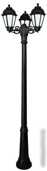 Фонарный столб Fumagalli Ricu Bisso/Saba K22.157.S30.AYF1R – это элитное уличное освещение с тремя лампами мощностью 60 Вт каждая, обеспечивающими яркость 800 лм. Он выполнен из прочных материалов — металл и пластик, а плафоны из стекла придают ему классический внешний вид. Каркас и плафоны окрашены в черный цвет, что хорошо сочетается с любым дизайном двора или сада. Столб оснащен цоколем E27, что позволяет использовать как светодиодные, так и лампы накаливания. Высота конструкции достигает 234 см, а размер 56x56 см делает ее заметной и функциональной. Благодаря повышенной влагозащищенности IP44, он выдерживает дождь и влажность. Такой уличный фонарь легко монтировать и он прослужит долго. Он не только освещает территорию, но и дополняет внешний вид участка своим классическим стилем.
