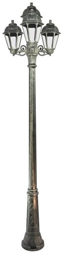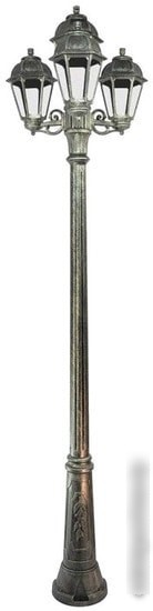 Фонарный столб Fumagalli Ricu Bisso/Saba K22.157.S31.BXF1R отлично подходит для освещения улиц и парков. Он оснащён четырьмя лампами мощностью 60 Вт, которые обеспечивают яркий свет с общей яркостью 800 люмен и цветовой температурой 2700K, создавая тёплую атмосферу. Каркас и плафоны выполнены из бронзового металла и стали, что делает дизайн классическим и устойчивым к погодным условиям. Плафоны из стекла добавляют изысканный внешний вид. Благодаря влагозащищённости IP44 он выдерживает дождь и влажность, сохраняя работу без сбоев. Устройство использует цоколь E27 и совместимо с накаливаниями и светодиодными лампами, которые идут в комплекте. Размеры столба — 56x56x248 см, его вес — 17 кг, что гарантирует надёжную установку. Конструкция обеспечивает долговечность и простоту монтажа. Такой фонарный столб сделает ваш двор уютным и безопасным.