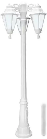 Фонарный столб Fumagalli Rut E26.156.S30.WYF1RDN украшает улицу классическим стилем и легко монтируется благодаря прочному пластиковому каркасу и стеклянным плафонам. Он оснащён тремя светодиодными лампами мощностью по 60 Вт, которые обеспечивают яркий световой поток в 800 люмен. Столб имеет белый цвет, что хорошо сочетается с любым городским дизайном, и его размеры — 64 см в ширину и 185 см в высоту — делают его заметным и функциональным. Благодаря повышенной влагозащищённости IP55, он надёжно защищён от дождя и пыли. В комплекте идут лампочки, что упрощает уход за освещением. Столб предназначен для использования в уличных условиях, он обладает высоким уровнем защиты и долговечностью. Его классический дизайн хорошо вписывается в парки, тротуары и жилые зоны. Этот фонарный столб сочетает простоту установки с эффективной работой на долгие годы.