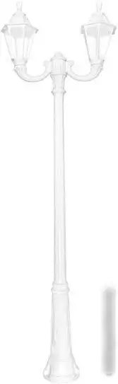 Фонарный столб Fumagalli Rut E26.157.R20.WXF1R помогает освещать территорию с помощью двух светодиодных ламп мощностью по 60 Вт. Он имеет классический дизайн с прозрачными плафонами и белым каркасом, что отлично вписывается в любой двор или сад. Каркас выполнен из пластика, а плафоны сделаны из стекла, что обеспечивает долговечность. Столб выделяется повышенной влагозащищенностью с уровнем IP55, она защищает устройство от влаги и пыли. Световой поток составляет 800 люмен, благодаря чему освещение получается ярким и равномерным. Столб обладает устойчивостью к погодным условиям и прост в монтаже. Он оснащён двумя лампочками в комплекте, что удобно и экономит время. Высота изделия — 250 см, ширина — 79 см. Такой фонарный столб подходит для освещения улиц, дорожек и территорий вокруг дома.