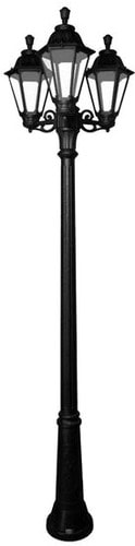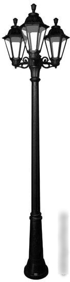 Фонарный столб Fumagalli Rut E26.157.S30.AXF1R обладает классическим дизайном и прочным корпусом из пластика и стекла. Он устанавливается на улице и выдерживает повышенную влажность благодаря степени защиты IP55. В нем используется три светодиодные лампы мощности 60 Вт каждая, которые обеспечивают яркость в 800 люмен на весь светильник. Цвет плафонов и абажуров прозрачный, а каркас выполнен в черном цвете, что смотрится стильно и аккуратно. Столб имеет размеры 250 см в высоту и 64 см в ширину, что хорошо подходит для освещения улиц или частных участков. В комплекте идут лампочки, так что изделие готово к использованию сразу после установки. Благодаря светодиодным лампам он потребляет меньше энергии и служит дольше. Простая установка и надежная защита делают его удобным выбором для наружного освещения.
