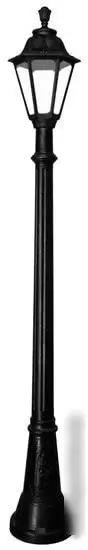 Фонарный столб Fumagalli Rut E26.158.000.АXF1R имеет классический дизайн и изготовлен из прочного пластика с стеклянным плафоном. Он оснащён одним светодиодным светильником мощностью 60 Вт, который обеспечивает яркость 800 люмен. Каркас окрашен в чёрный цвет, а прозрачный плафон позволяет равномерно рассеивать свет. Столб стоит 192 см в высоту, что создаёт хороший эффект освещения для улицы. Благодаря влагозащищённости IP55 он устойчив к погодным условиям. Корпус оборудован цоколём E27, что облегчает замену ламп. В комплект входит одна лампа, и она работает эффективно и долго. Универсальный дизайн отлично подходит для уличных территорий и садов.