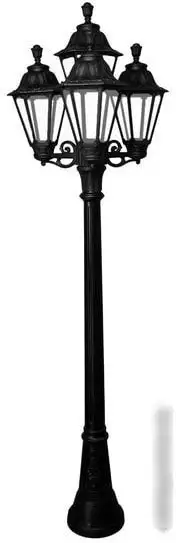 Фонарный столб Fumagalli Rut E26.158.S31.AXF1R отлично подходит для уличного освещения. Он оснащён четырьмя светодиодными лампами мощностью 60 Вт каждая, что обеспечивает яркий свет с общим световым потоком 800 люмен. Каркас сделан из прочного пластика, а плафоны из стекла, что придаёт классический стиль и долговечность. Светильник имеет прозрачные плафоны и чёрную основу, создавая элегантный внешний вид. Благодаря степени влагозащиты IP55 он выдержит любые погодные условия. В комплект входит лампочка, что упрощает установку. Высота столба — 210 см, ширина — 64 см, что делает его заметным и функциональным. Он легко монтируется и устойчиво выглядит на улице, обеспечивая хорошее освещение.