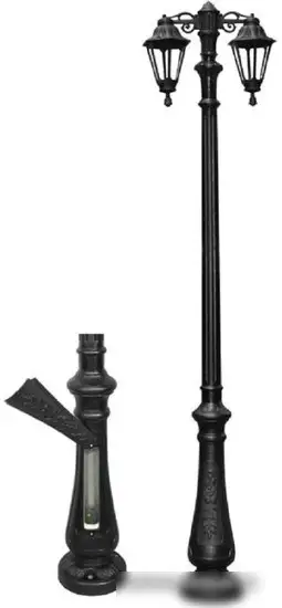 Фонарный столб Fumagalli Rut E26.202.S20.AXF1R DN создаёт яркое освещение с световым потоком 800 лм, оснащён двумя лампами типа E27, которые легко заменить при необходимости. Он выполнен из прочного пластика черного цвета и имеет прозрачные плафоны, что обеспечивает классический и современный вид. Столб успешно защищён от влаги и пыли по стандарту IP55, что делает его устойчивым к различным погодным условиям. Размеры устройства — 69 см в ширину и 263 см в высоту, а вес составляет 22,5 кг. Использование пластикового материала облегчает монтаж и долговечность конструкции. Столб не содержит пульта дистанционного управления, что минимизирует сложность использования. Он легко устанавливается на улице, обеспечивая надёжное освещение дорожек и двора. Этот фонарный столб — хороший выбор для тех, кто ищет практичное и долговечное решение для уличного освещения.