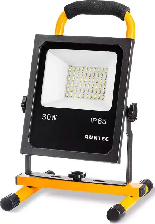 Уличный прожектор Runtec GL-WS30 предназначен для наружного освещения и легко устанавливается на улице. Он работает от аккумулятора и имеет мощность 30 Вт, что обеспечивает яркий световой поток в 2400 лм с цветовой температурой 6500 K. Прожектор выполнен из стойкого металла с современным дизайном и сочетает желтый и черный цвета, а прозрачный плафон помогает равномерно рассеивает свет. Благодаря поворотным лампам вы можете точно настроить направление освещения. Он оснащен повышенной влагозащищенностью IP65, что делает его устойчивым к дождю и пыли. Устройство не управляется пультом или датчиками, управлять им можно вручную. Такой прожектор подходит для освещения дорожек, дворов и фасадов, обеспечивая надежную работу на улице.