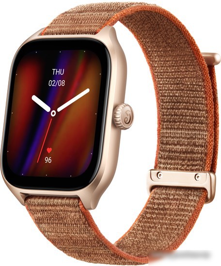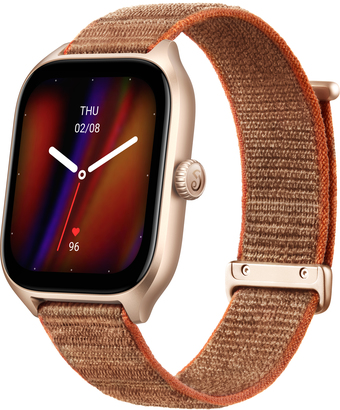 Умные часы Amazfit GTS 4 (золотистый, с коричневым нейлоновым ремешком)