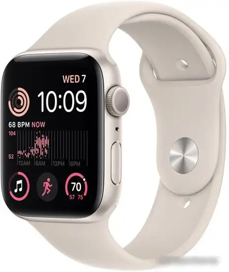Умные часы Apple Watch SE 2 44 мм (алюминиевый корпус, звездный свет/звездный свет, спортивный силиконовый ремешок S/M)