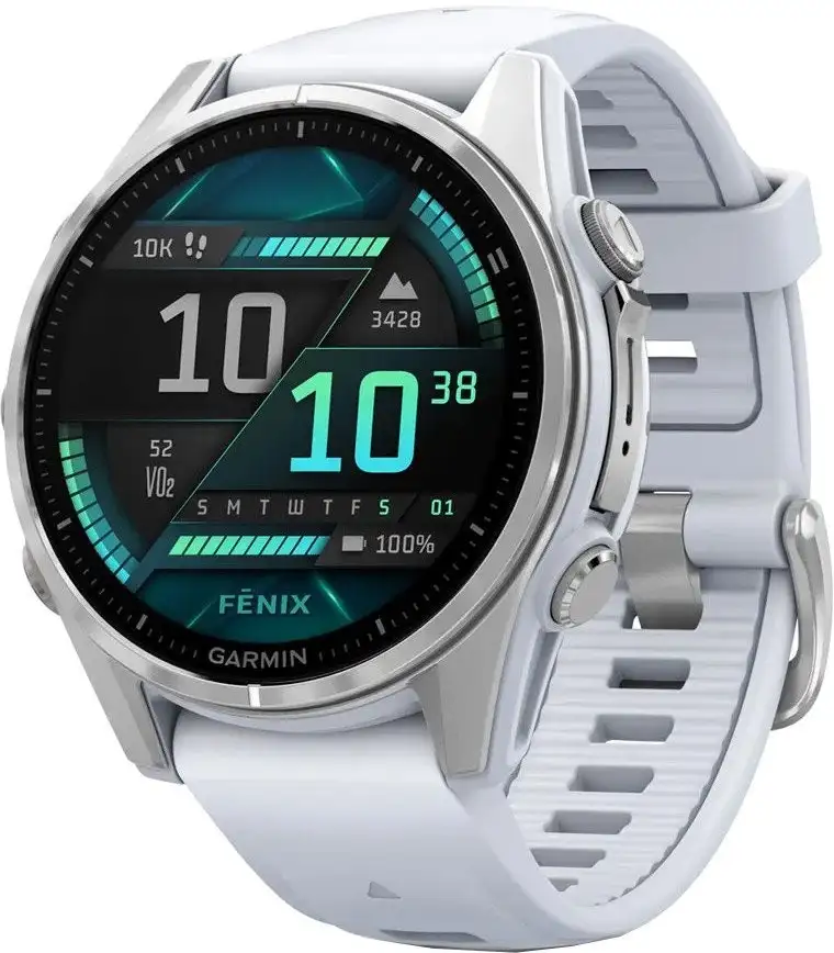 Умные часы Garmin Fenix 8 43мм (серебристый, белый ремешок)