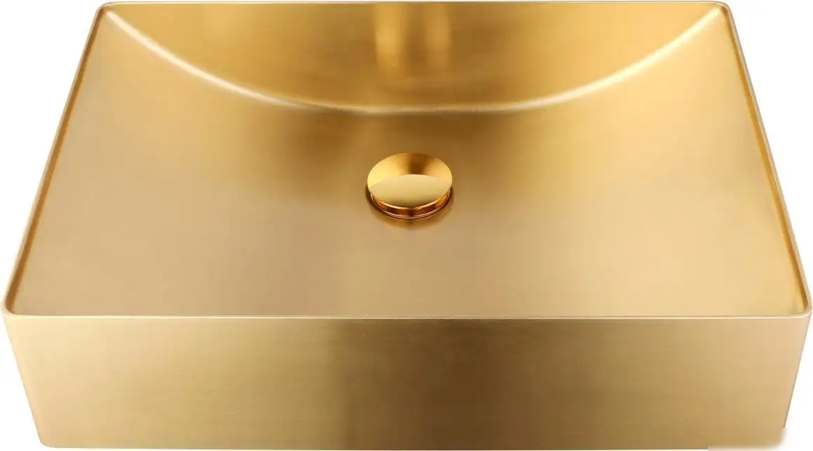 Умывальник Altrobagno Futuro 001013 OrSp выполнен из металла в элегантном золотом цвете. Он имеет прямоугольную форму с одной чашей и устанавливается накладным способом на мебельный шкаф или столешницу. Конструкция предназначена для использования с отдельностоящим смесителем, что удобно для разнообразных интерьеров. Размеры умывальника: ширина 49,6 см, глубина 34,6 см и высота 12,5 см, что делает его компактным и практичным. Донный клапан обеспечивает надежное сливное соединение и простоту эксплуатации. Устройство не включает смеситель, кронштейны и крепеж, что позволяет выбрать оборудование по собственному вкусу. Отсутствие перелива и отверстия под смеситель делает монтаж прочным и аккуратным. Это решение отлично подойдет для современного интерьера ванной комнаты.