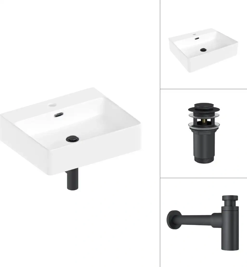 Умывальник Lauter 21478 + клапан 9229832 + сифон 21635B (черный матовый)