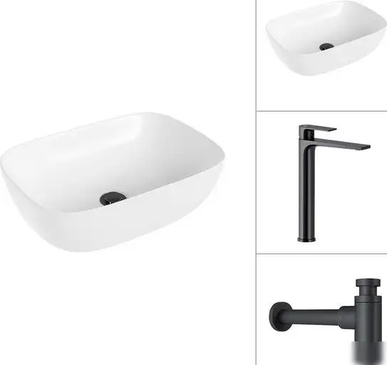 Умывальник Lauter 21493A + Reef 21CK8678BS с сифоном 21635B (черный матовый)