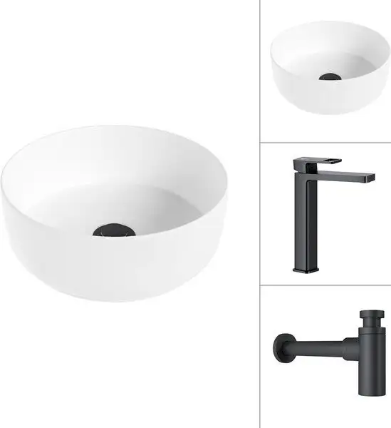 Умывальник Lauter 21499-31 + Cascade 21СК0655BS с сифоном 21635B (черный матовый)