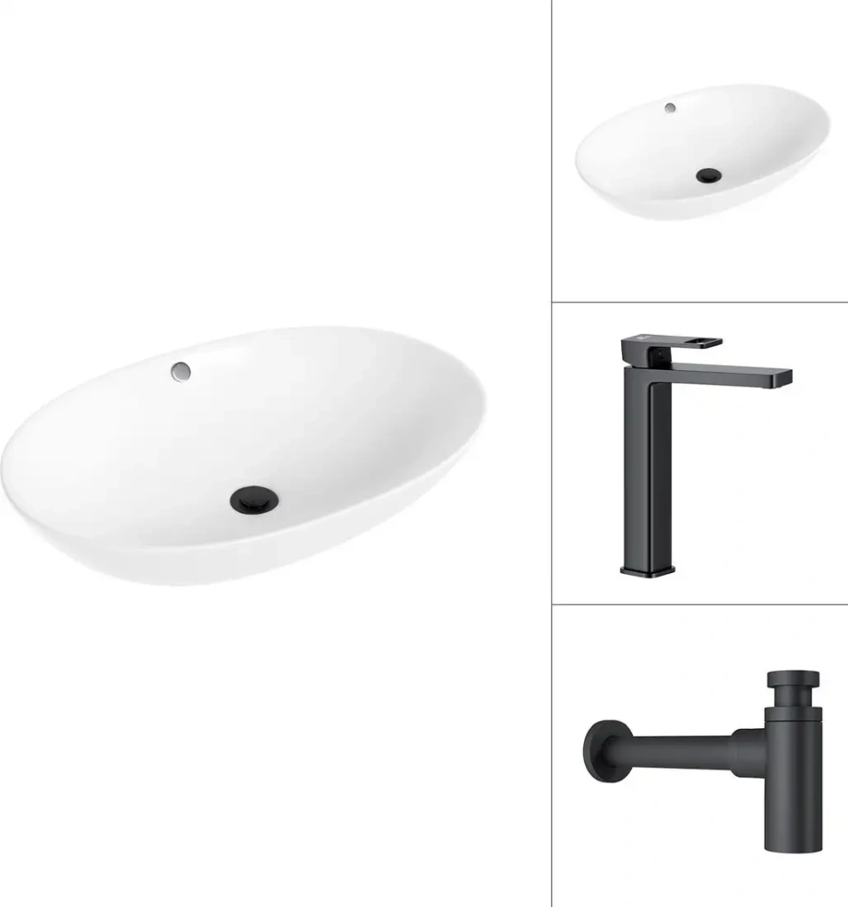 Умывальник Lauter 21709 + Cascade 21СК0655BS с сифоном 21635B (черный матовый)