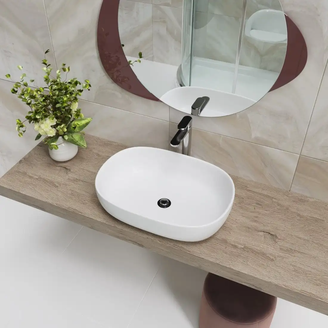 Умывальник Lauter 21836 имеет овальную форму и выполнен из качественной санитарной керамики белого цвета. Он предназначен для установки на столешницу и закрыт креплением. Размеры умывальника составляют 60 см по ширине и 41 см по глубине, что делает его компактным и удобным в использовании. В конструкции отсутствует перелив и отверстие под смеситель, поэтому их нужно учитывать при выборе комплектующих. Он не имеет встроенных полок или шкафов, что обеспечивает простоту ухода и очистки. Этот умывальник легко монтируется, отлично вписывается в современный интерьер ванной комнаты. Благодаря своим простым и практичным характеристикам, он подойдет для дома и ванных комнат с ограниченным пространством.
