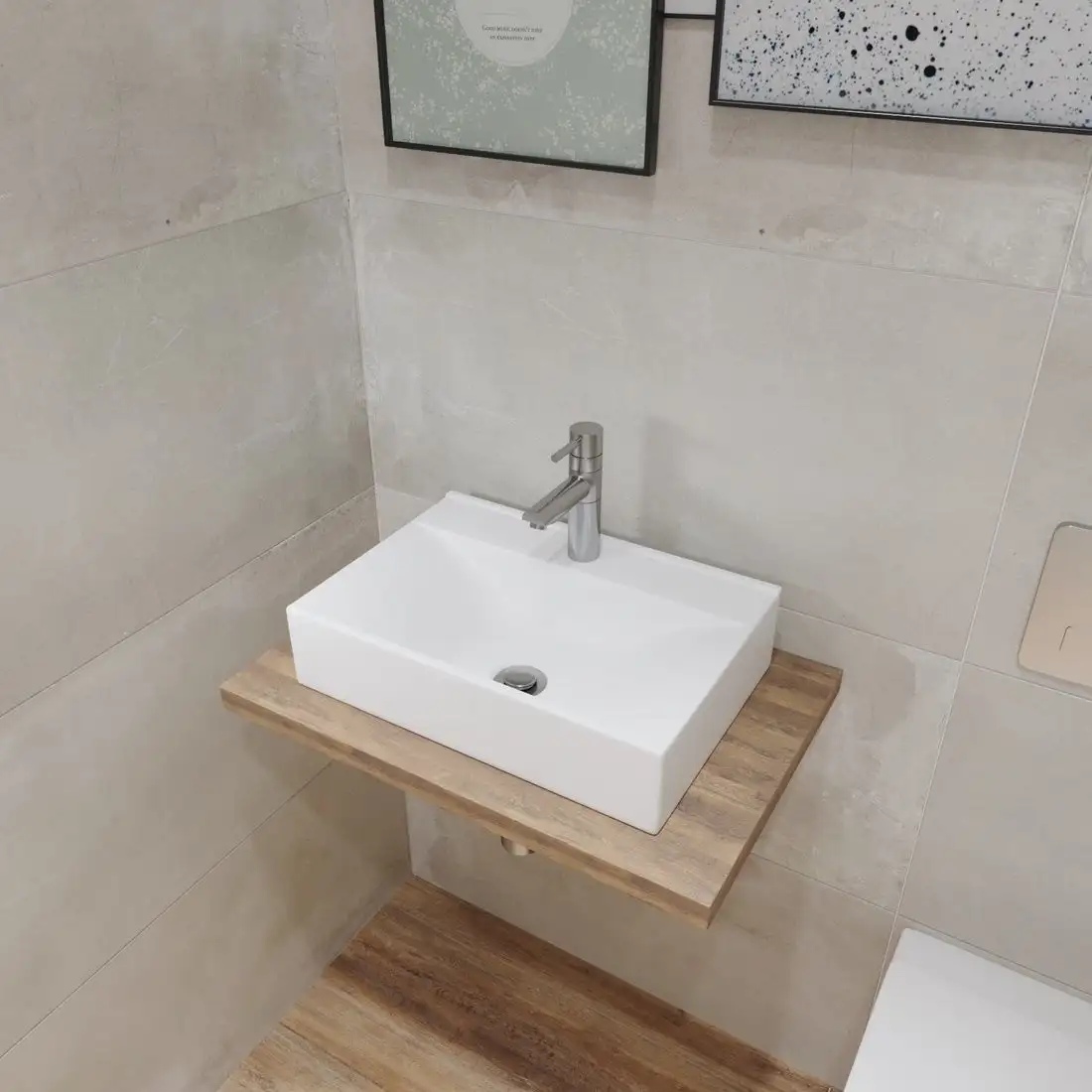 Умывальник Lauter 21887B — это белая керамическая мойка прямоугольной формы размером 45х31 см, которая устанавливается на столешницу. Он имеет одну чашу и отверстие под смеситель для удобства использования. Крепится он прямо к поверхности, не требует дополнительной мебели или полок под ним. Благодаря керамике, умывальник легко чистить и он прослужит долго. В конструкции отсутствует перелив, поэтому важно учитывать правильное подключение.