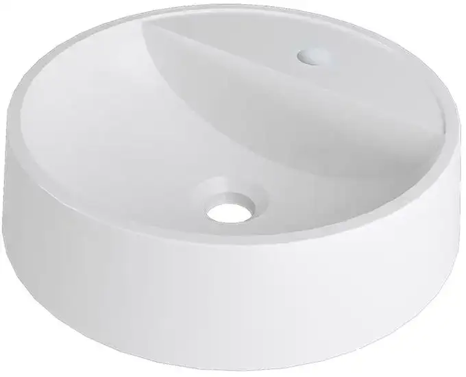 Умывальник Madera Luna 40 — это круглая модель с одной чашей, которая легко крепится на столешницу. Он сделан из искусственного мрамора и имеет белый цвет, что отлично подходит для любой ванной комнаты. Умывальник не имеет отверстия под смеситель и перелива, поэтому его нужно устанавливать с отдельным смесителем. Размеры умывальника — 38,5 см в ширину и глубину, а высота — 11 см, он компактный и занимает мало места. Конструкция накладная, что облегчает монтаж и уход за изделием. Этот умывальник хорошо подходит для тех, кто ценит простоту и аккуратный внешний вид. Также он не имеет дополнительных полок или полотенцедержателей, что делает его минималистичным и удобным в использовании.
