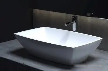 60x38 см, с одной чашей, накладной, искусственный камень, крепление на мебельный шкаф/на столешницу