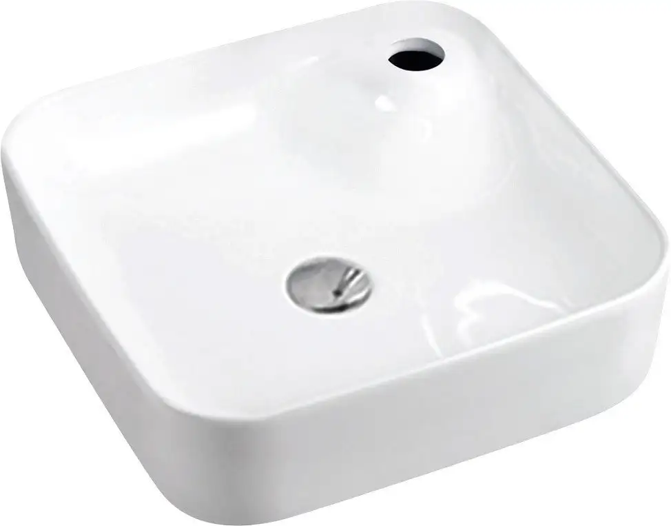 Умывальник Saniteco AT009 — это квадратная модель, выполненная из прочной санитарной керамики в белом цвете. Он крепится на столешницу, что делает установку простой и удобной. В комплект входит сливная арматура, что позволяет быстро подключить раковину к канализации. Размеры умывальника: ширина и глубина по 42,5 см, высота — 12 см, что подходит для многих ванных комнат. Особенность модели — отсутствие перелива и отверстия под смеситель. Этот умывальник отлично впишется в современный интерьер ванной комнаты. Его простая конструкция и хорошие материалы обеспечивают долговечность и лёгкость в уходе.
