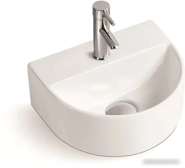 - Стильный полукруглый дизайн — придает ванной современный вид