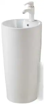 Умывальник SantiLine SL-4011 — это напольная модель с одной чашей, сделанная из санитарной керамики. Он имеет круглую форму и белый цвет, что отлично подойдет для любой ванной комнаты. В устройстве есть отверстие под смеситель и встроенный перелив, что делает использование более удобным и безопасным. Размеры умывальника — 41 см по ширине и глубине, а высота — 85 см. В комплекте отсутствует пьедестал и полки, что позволяет установить его по своему вкусу. Такой умывальник прост в уходе, благодаря своему материалу и форме.