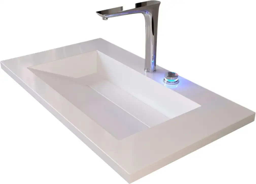 - Изготовлен из искусственного мрамора — устойчив к повреждениям и лёгок в уходе.