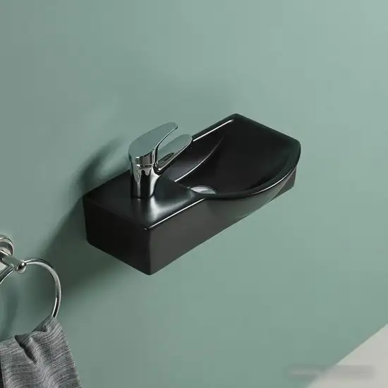 Умывальник WeltWasser AISBACH 7940 MT-BL L — это небольшая настенная раковина из санитарной керамики в черном цвете. Он имеет прямоугольную форму и легкую установку на стену, освобождая место в комнате. В конструкции есть отверстие под смеситель и перелив для безопасного использования. Благодаря антибактериальному покрытию, поверхность проще поддерживать в чистоте и она более гигиенична. Размеры умывальника составляют 40 см в ширину, 22 см в глубину и 12 см в высоту, что делает его подходящим для небольших помещений. Этот мини-мойка не включает смеситель, кронштейны или сливную арматуру, что дает возможность выбрать нужные детали отдельно.