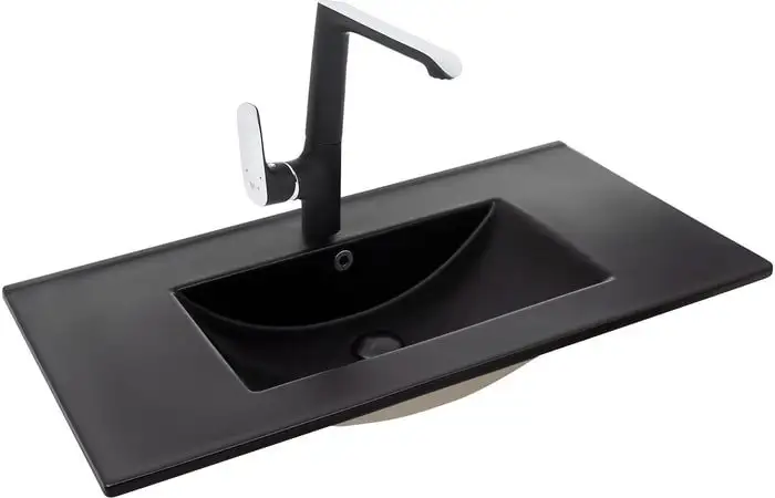 Умывальник WeltWasser Deilbach 7506-100 MT-BL — это врезной предмет интерьера, выполненный из санитарной керамики с матовым черным цветом. Он имеет прямоугольную форму и одно большое отверстие для установки смесителя, а также специальное крыло для удобства использования. В конструкции предусмотрен перелив, что предотвращаетOverflow, и антибактериальное покрытие, повышающее гигиену. Габариты помогут легко разместить его на вашей столешнице: ширина — 101 см, глубина — 47 см, высота — 18 см. Этот умывальник не комплектуется пьедесталом или полками, что позволяет гармонично вписать его в любой интерьер. Он отлично подходит для тех, кто ищет функциональный и стильный предмет для ванной комнаты.