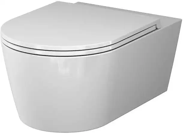 подвесной, конструкция: без бачка, задний подвод воды, горизонтальный выпуск, с сиденьем, безободковый