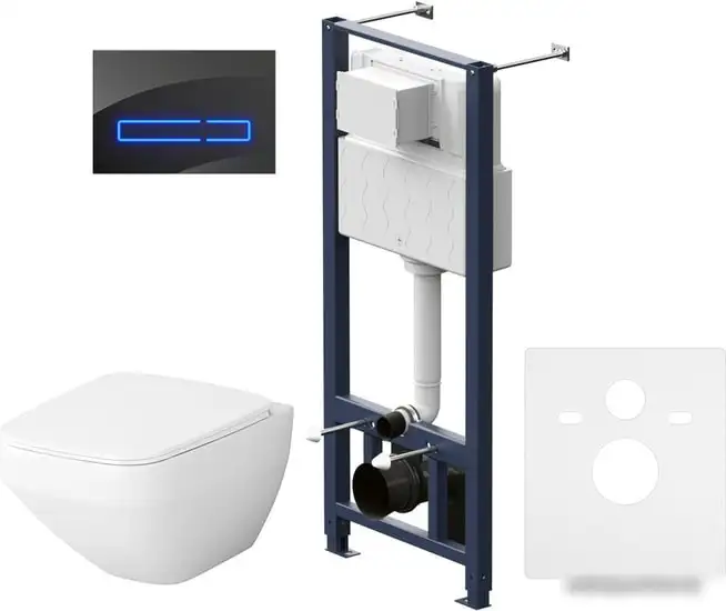 подвесной, конструкция: без бачка, боковой подвод воды, горизонтальный выпуск, двухрежимный слив, с сиденьем