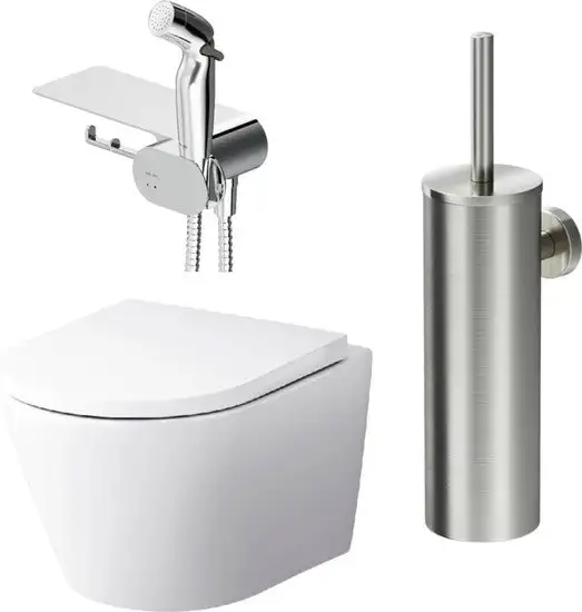 подвесной, конструкция: без бачка, задний подвод воды, горизонтальный выпуск, с сиденьем, безободковый