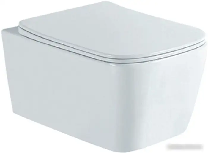 подвесной, конструкция: без бачка, задний подвод воды, горизонтальный выпуск, с сиденьем, безободковый