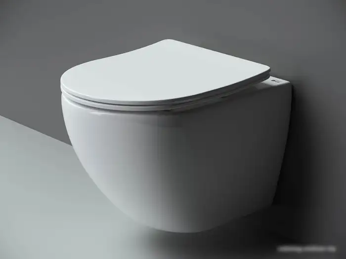 подвесной, конструкция: без бачка, задний подвод воды, горизонтальный выпуск, с сиденьем, безободковый