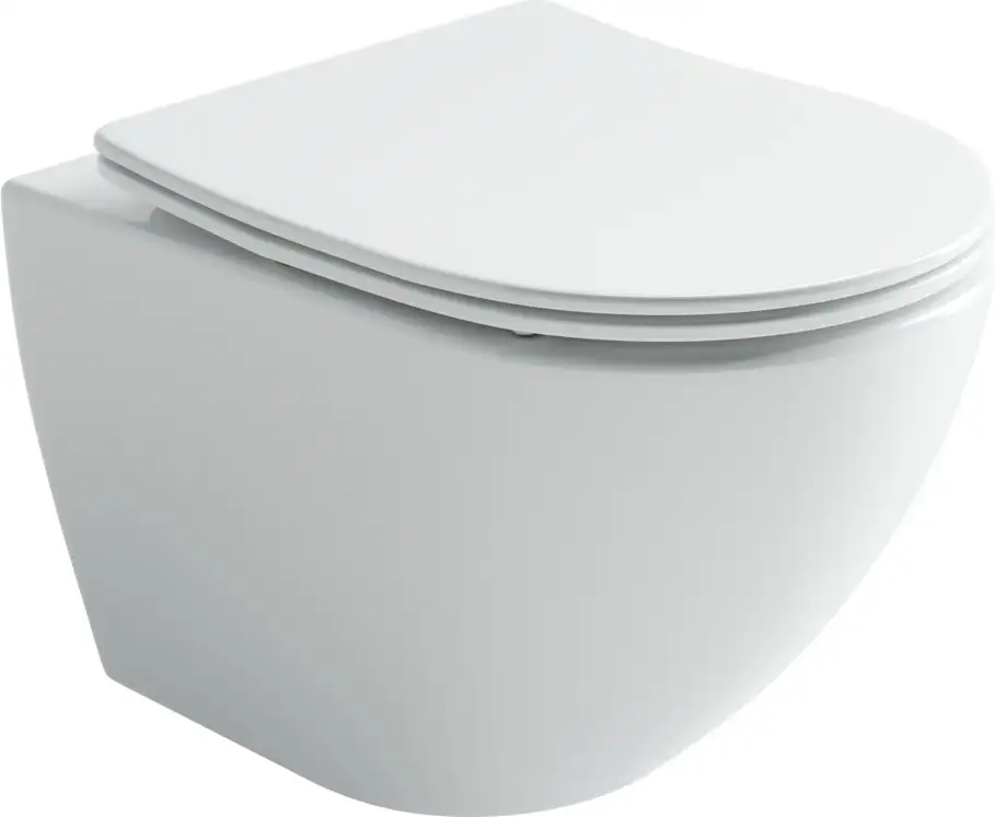 подвесной, конструкция: без бачка, задний подвод воды, горизонтальный выпуск, с сиденьем, безободковый