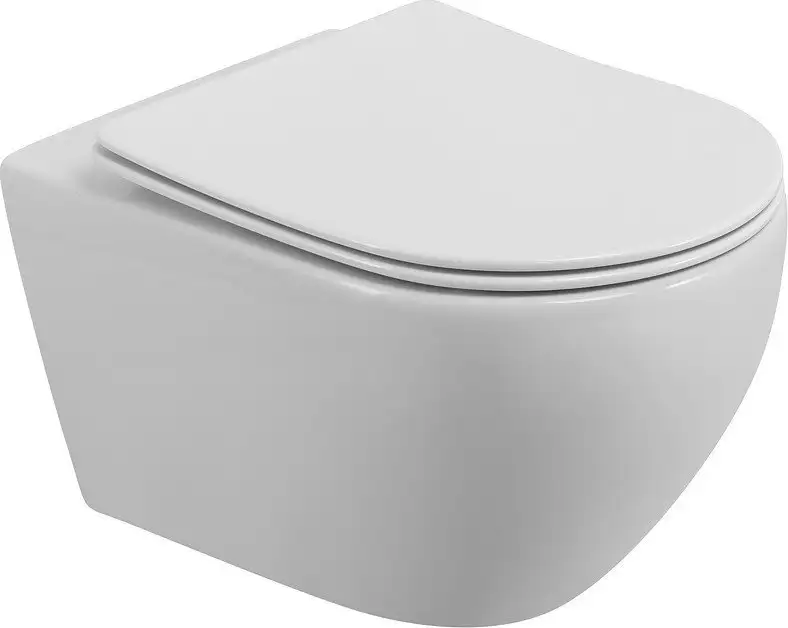 подвесной, конструкция: без бачка, задний подвод воды, горизонтальный выпуск, однорежимный слив, с сиденьем, безободковый